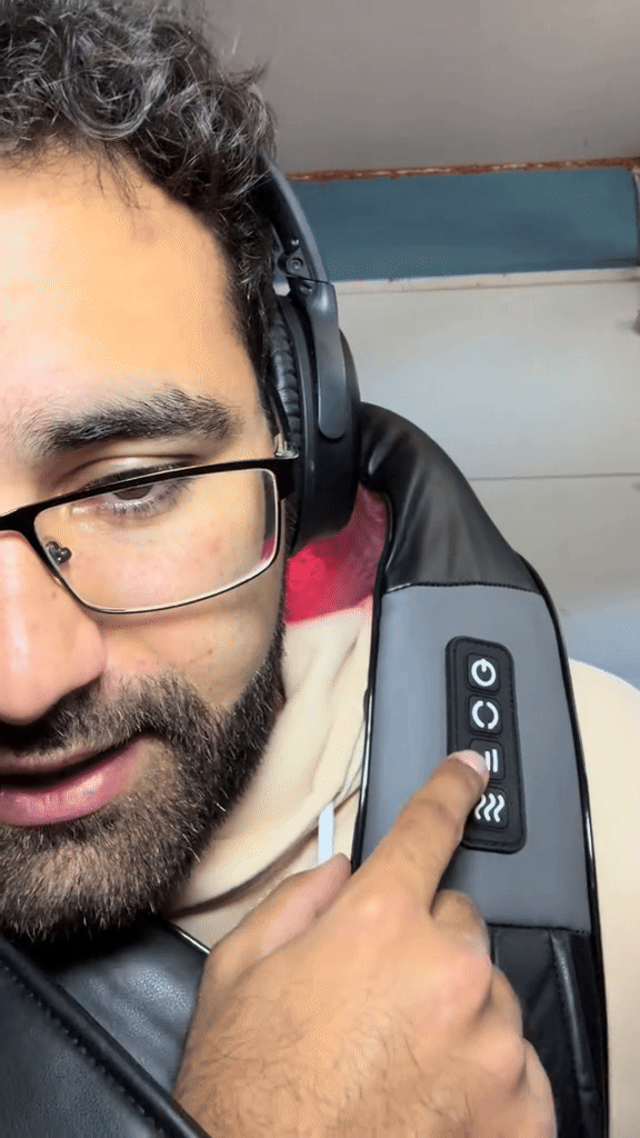The heat function relaxes tight muscles, increases circulation, and reduces stiffness, supporting better alignment and flexibility for improved posture.